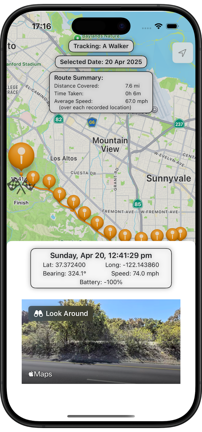 Each update includes timestamp, speed, direction, and battery percentage for a complete picture of their movements.